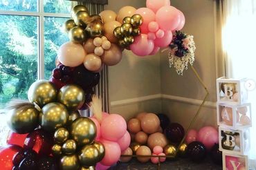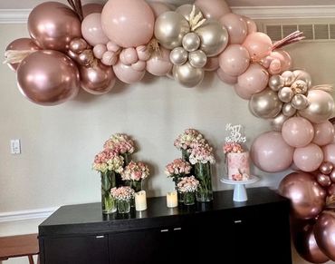 Balloon garlands are priced by the foot and start at $25 per foot.